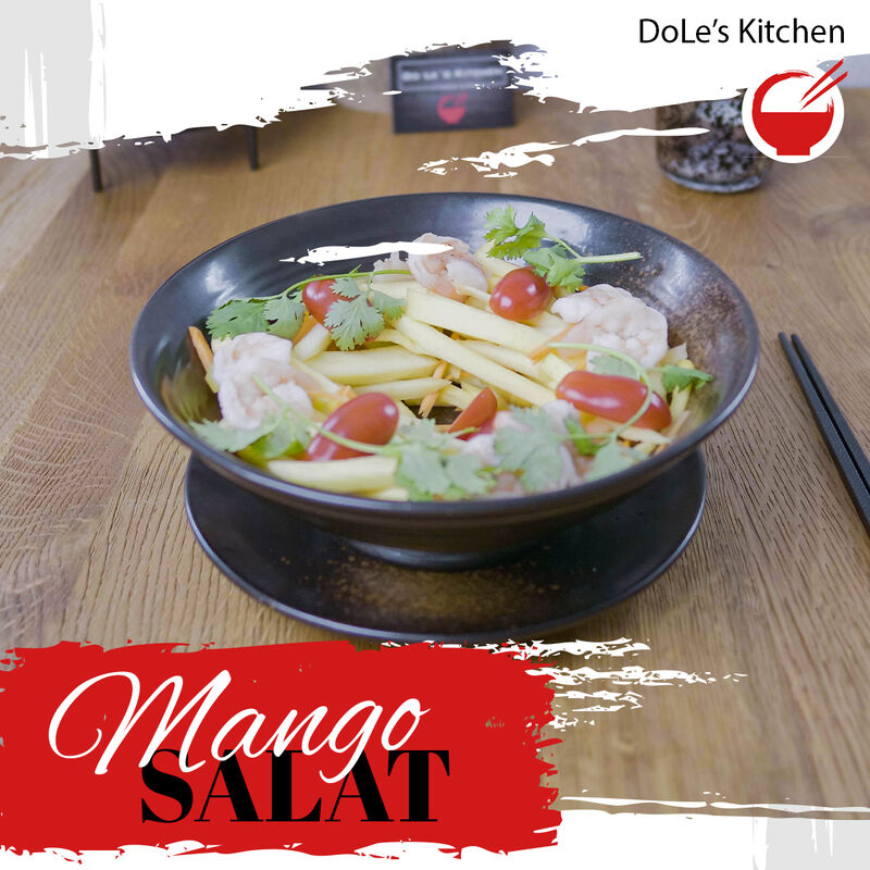 Garnelen auf Mango-Curry Soße mit Reis und Gemüse